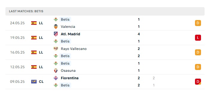 • Phong độ gần đây Betis