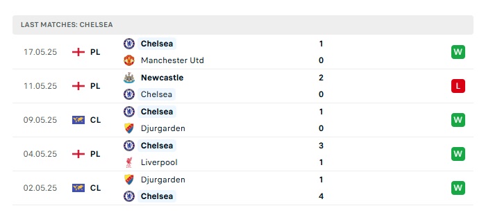 • Phong độ gần đây Chelsea
