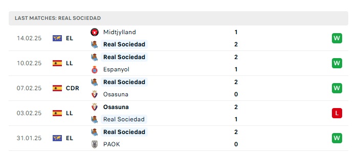 - Phong độ gần đây Real Sociedad