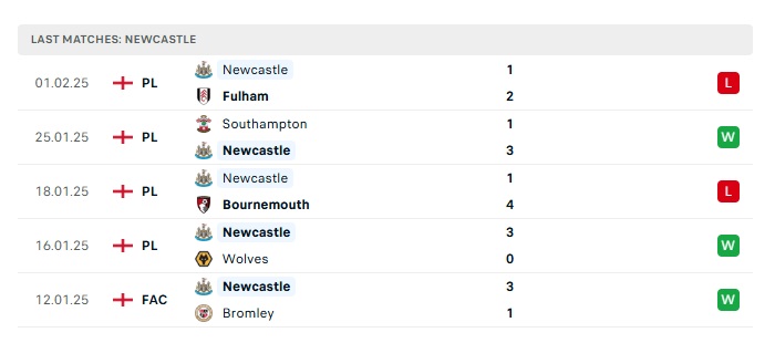 - Phong độ gần đây Newcastle