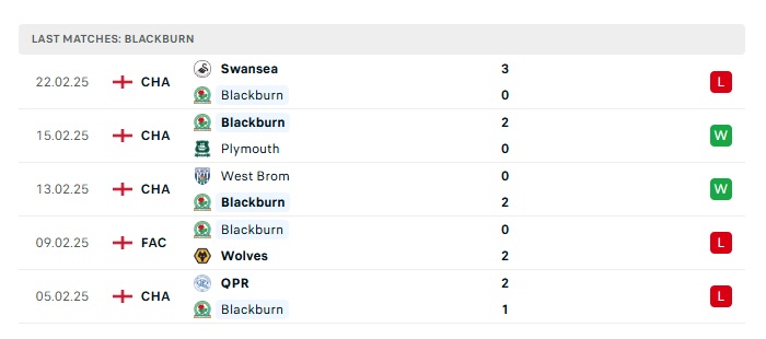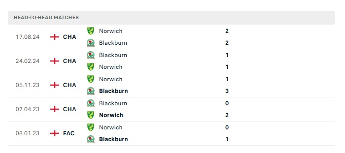 Phong độ gần đây Blackburn Rovers vs Norwich