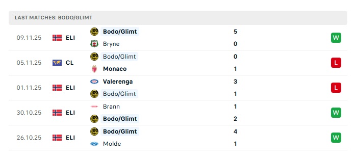 - Phong độ gần đây Bodo Glimt