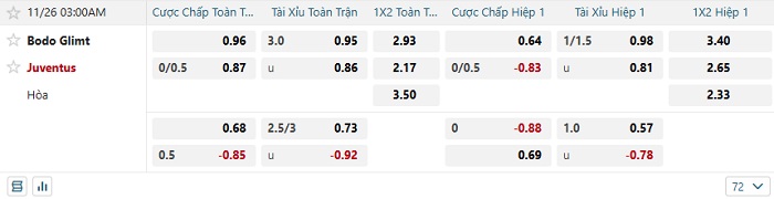 - Kèo tỷ số H1 Bodo Glimt vs Juventus: 0-0