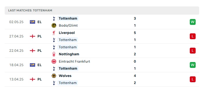 • Phong độ gần đây Tottenham