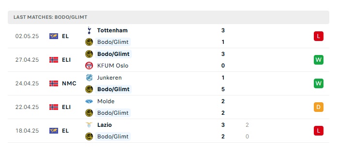 Phong độ gần đây Bodo Glimt vs Tottenham