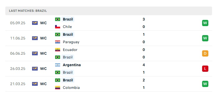 • Phong độ gần đây Brazil
