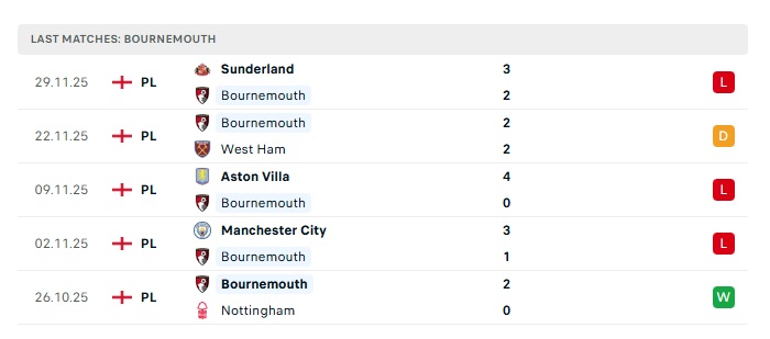 - Phong độ gần đây Bournemouth