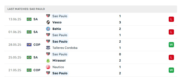 - Phong độ gần đây Sao Paulo