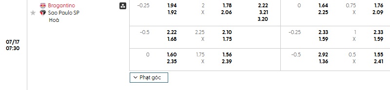 Soi kèo châu Á, kèo Bragantino vs Sao Paulo