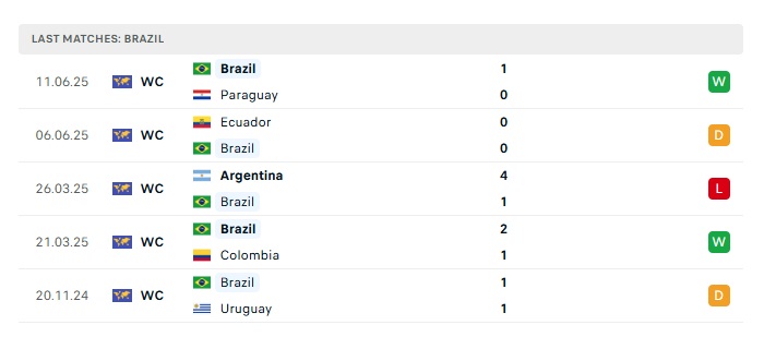 • Phong độ gần đây Brazil