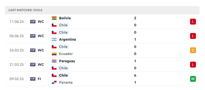 • Phong độ gần đây Chile