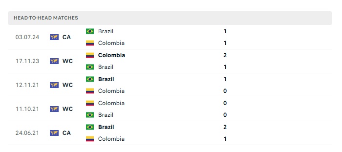 Phong độ gần đây Brazil vs Colombia