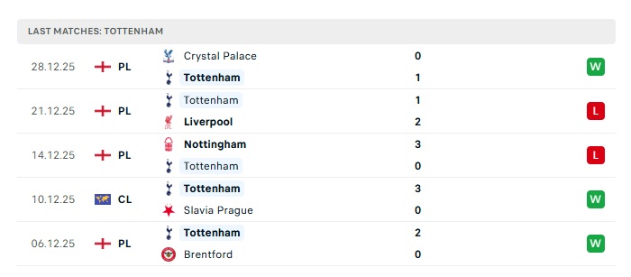 - Phong độ gần đây Tottenham