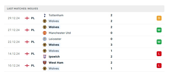 - Phong độ gần đây Wolves