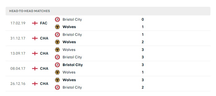 Lịch sử đối đầu Bristol City vs Wolves