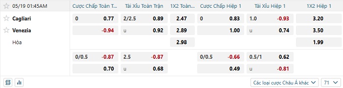 Soi kèo châu Á, kèo Cagliari vs Venezia