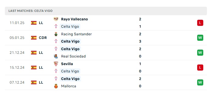 • Phong độ gần đây Celta Vigo