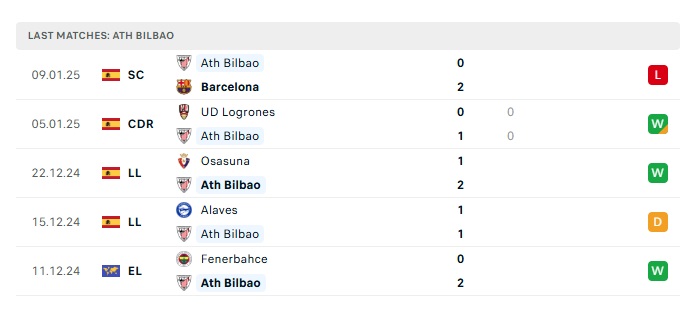 • Phong độ gần đây Athletic Bilbao