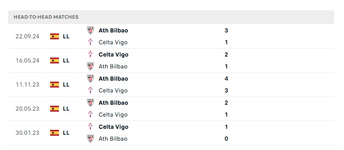 Lịch sử đối đầu Celta Vigo vs Athletic Bilbao