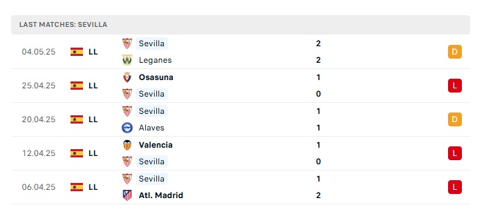 • Phong độ gần đây Sevilla