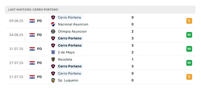 - Phong độ gần đây Cerro Porteno