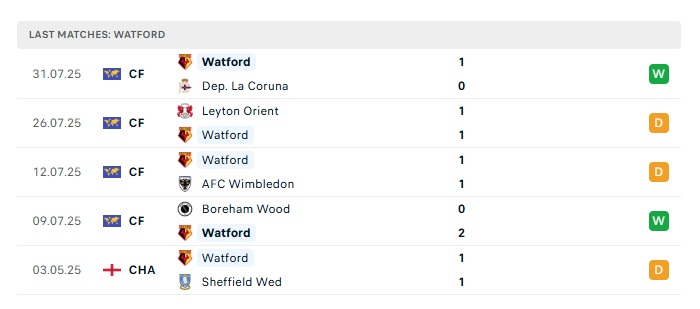 - Phong độ gần đây Watford