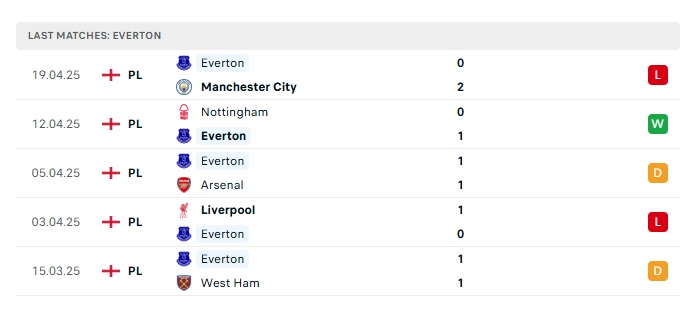 - Phong độ gần đây Everton