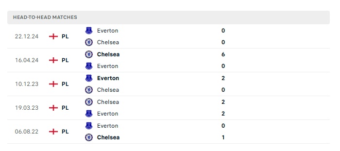Lịch sử đối đầu Chelsea vs Everton