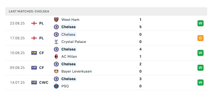 - Phong độ gần đây Chelsea