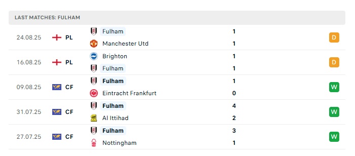 - Phong độ gần đây Fulham