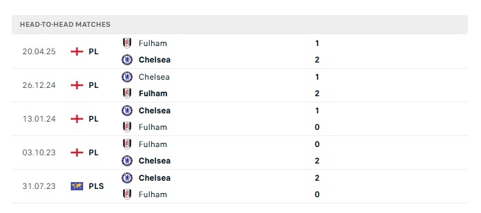 Lịch sử đối đầu Chelsea vs Fulham