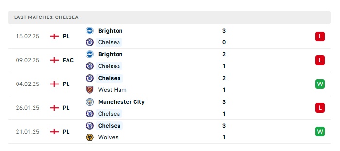 • Phong độ gần đây Chelsea