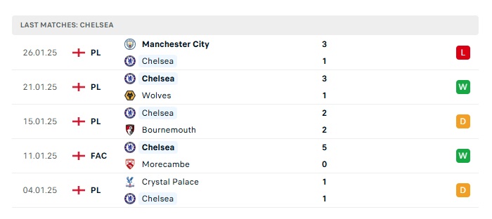 - Phong độ gần đây Chelsea