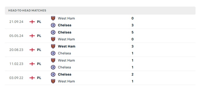 Lịch sử đối đầu Chelsea vs West Ham