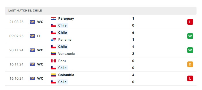 - Phong độ gần đây Chile