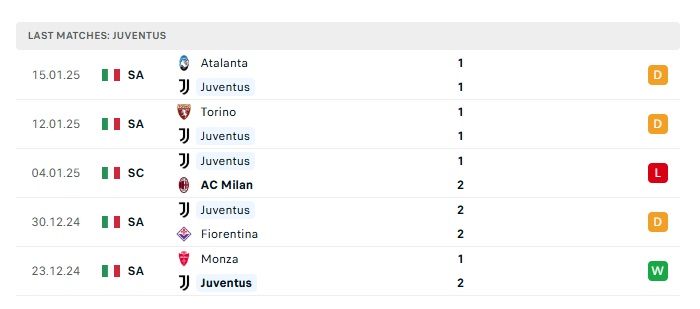 - Phong độ gần đây Juventus