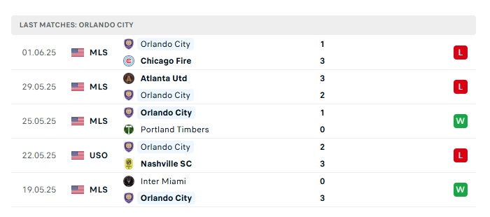 - Phong độ gần đây Orlando City