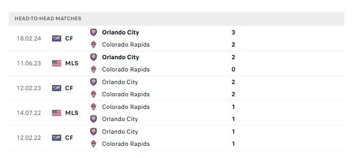 Lịch sử đối đầu Colorado Rapids vs Orlando City