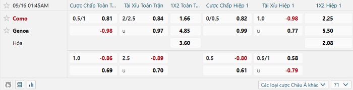 - Kèo tỷ số H1 Como vs Genoa: 0-0