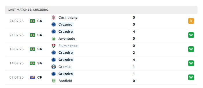 - Phong độ gần đây Cruzeiro