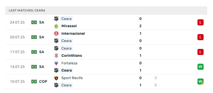 - Phong độ gần đây Ceara