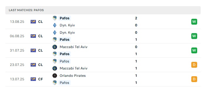 - Phong độ gần đây Pafos