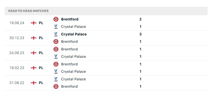 Lịch sử đối đầu Crystal Palace vs Brentford