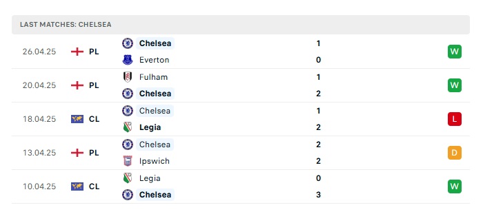 - Phong độ gần đây Chelsea