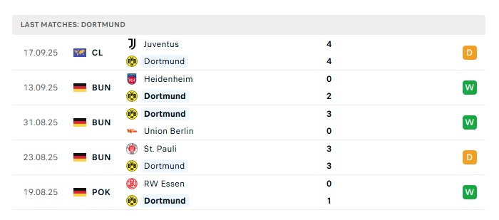 - Phong độ gần đây Dortmund