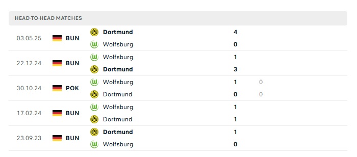 Phong độ gần đây Dortmund vs Wolfsburg