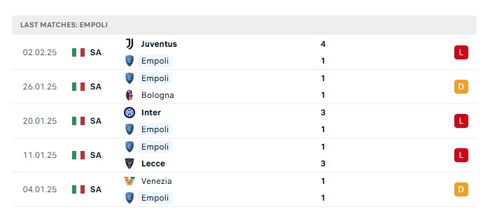 - Phong độ gần đây Empoli