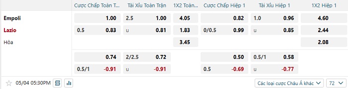 Soi kèo châu Á, kèo Empoli vs Lazio
