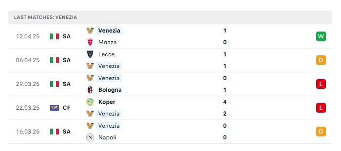 - Phong độ gần đây Venezia