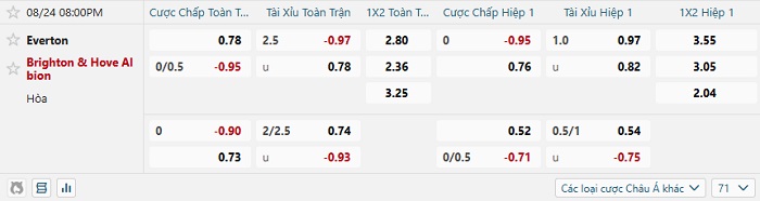 Soi kèo châu Á, kèo Everton vs Brighton